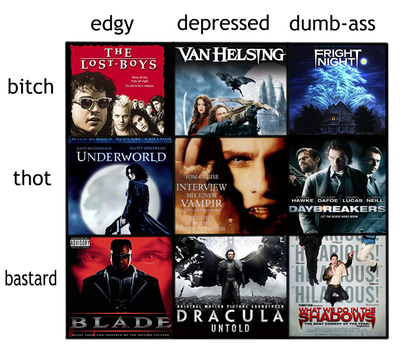 Image October 29, 2018December 5, 2018maxellera bromhamsam: The New Alignment Chart – Vampire Edition Share this: Share on X (Opens in new window) X Share on Facebook (Opens in new window) Facebook Like Loading... Related